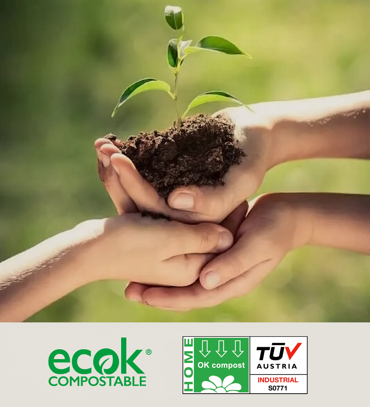Muchos de nuestros productos han sido galardonados con la marca OK por lo tanto, cumplen con la norma UNI EN 13432 sobre compostabilidad, que puede desecharse en plantas de compostaje industrial.